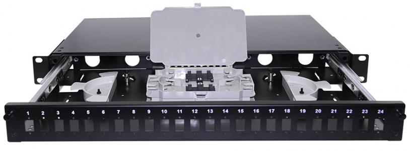 19" telescopic fiber tray with 24 SC/LCdx front,