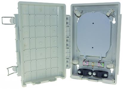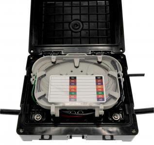 Indoor/outdoor fibre box with 12/24 fusion tray. 200x175x80mm. IP67. Black.